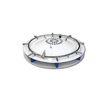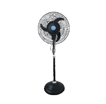 Sur ces ventilateurs, on adapte une couronne de buses en INOX  et on alimente cette couronne en brume grâce à une pompe haute pression  80 bars  qui peut alimenter plusieurs ventilateurs en même temps.